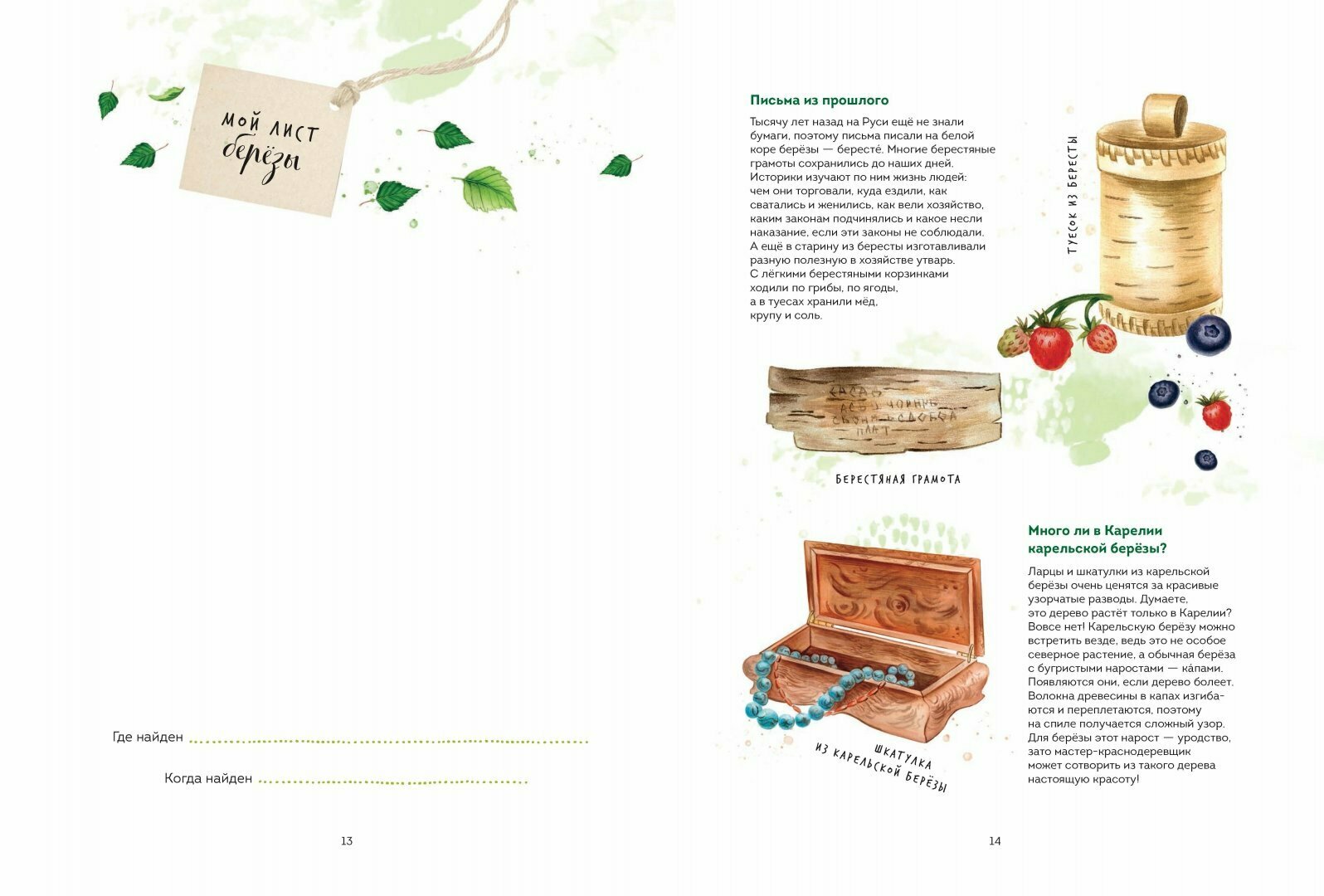 Отличное качество. Большой формат , твёрдый переплёт. Книга знакомит ребёнка с деревьями России. В книге представлены 16 деревьев, а также идут вкладыши после каждого описанного дерева, куда можно вложить образец листочков. Ребёнок был очень доволен, было интересно искать в лесу деревья и вкладывать листочки в книгу.