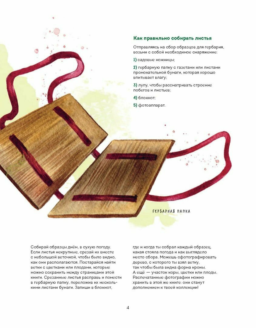 Но это ещё не всё. Можно стать не только читателем, но и полноправным автором этой книги. Собрать листья деревьев, засушить их, приклеить полосками бумаги на специально отведённые станицы и подписать. И тогда получится собственная научная коллекция - гербарий!