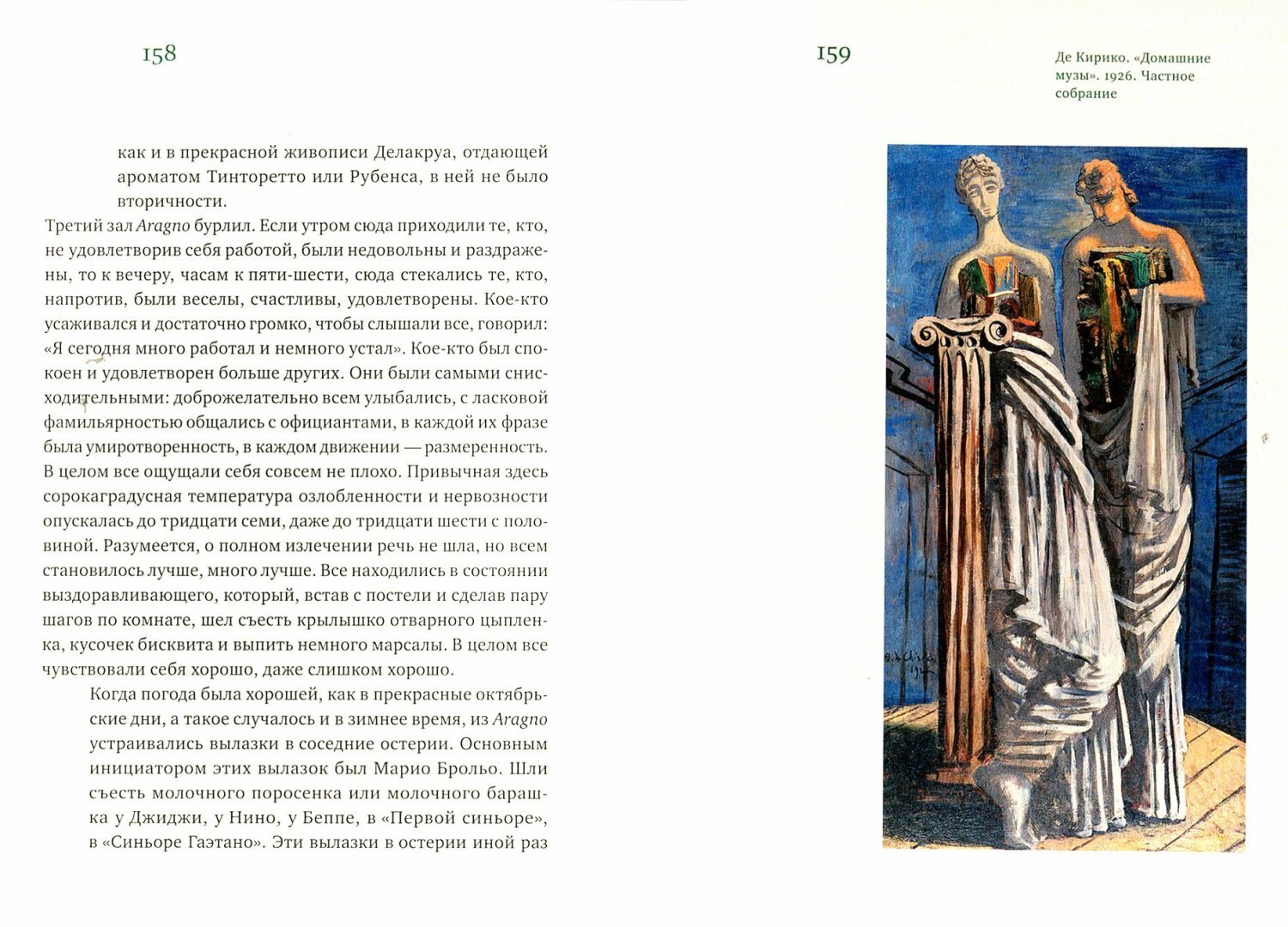 Кирико имеет очень сложный, странный и при этом лаконичный художественый мир. Его произведения загадочны и своеобразны и дабы немного приобщиться к этому миру, заглянуть за завесу его тайны, думаю, полезно прочесть эту книгу. Она раскрывает личность де Кирико, демонстрирует его личностные особенности, описывает его взгляды на искусство. Оформление и качество книги не оставляют по себе разочарования. Полиграфия достойная, корешок у книги неплох, бумага страниц белая