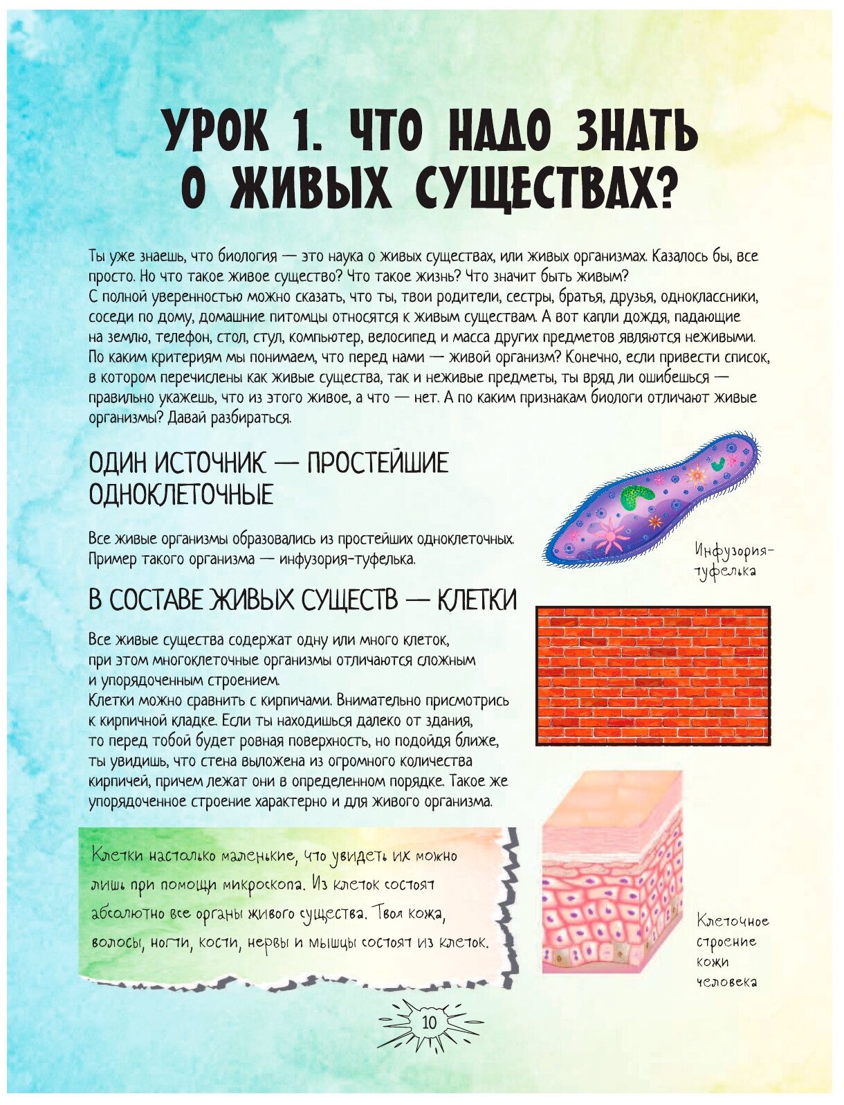 Биология занимается изучением абсолютно всех живых организмов: их зарождением, развитием и всеми изменениями, которые происходят с ними в течении жизненного цикла. И совсем не зря ее считают одной из основных наук. Ведь она является неотъемлемой частью нашего существования на Земле.Что такое жизнь? Почему мы болеем? Какие органы отвечают за распознавание вкусов? Сколько костей у взрослого человека? Почему мы похожи на наших родителей? Как питаются и размножаются растения? Почему все живые организмы, обитающие на одной территории, связаны друг с другом? И наконец, как с этим связана биология? На все вопросы ты найдешь ответы в этой книге. Здесь в простой и увлекательной форме объясняются сложные, на первый взгляд, явления, которые происходят в живой природе, строение всех живых существ: от бактерий до организма человека. Кроме того, в издании предлагается провести занимательные эксперименты и выполнить интересные задания, а также приводится множество любопытных фактов.