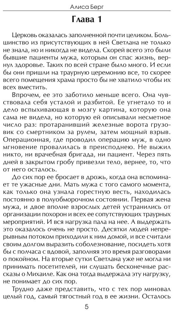 Светлана - успешная и талантливая переводчица в крупном издательстве. После трагической смерти мужа ей приходится строить жизнь заново. Вокруг неё несколько очень привлекательных, совершенно разных мужчин. Молодой любовник Артём дарит ей бездну наслаждения, а загадочный Юрий касается самых тонких струн её женской души. Андрей Сафронов, крупный и богатый бизнесмен делает ей предложения, от которого невозможно отказаться. Как разрешится этот любовный многоугольник, вы узнаете в увлекательном романе Алисы Берг.