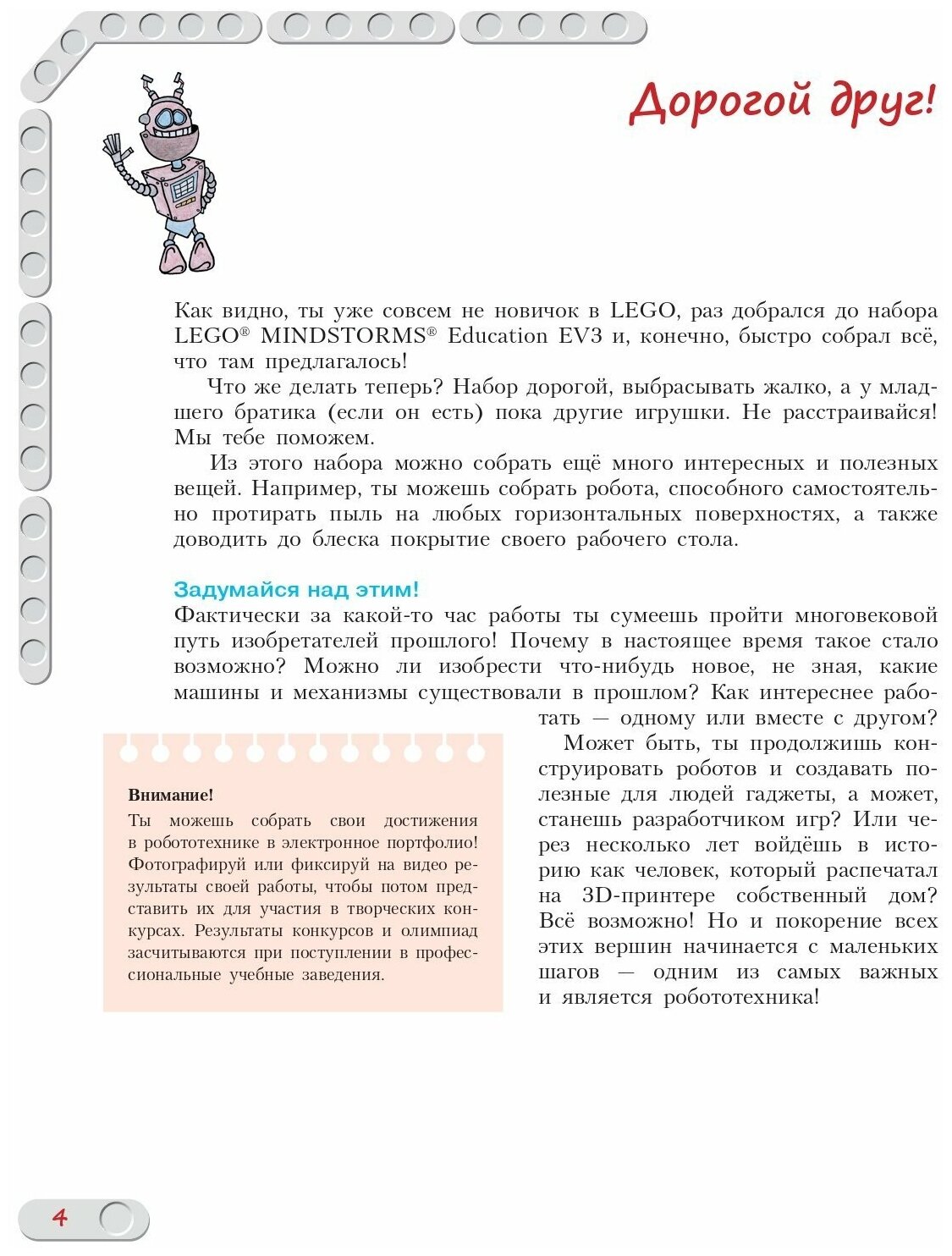 Стать гениальным изобретателем легко! Серия книг "РОБОФИШКИ" поможет вам создавать роботов, учиться и играть вместе с ними. С помощью деталей конструктора LEGO® MINDSTORMS® Education EV3 вы сможете собрать робота, способного самостоятельно протирать пыль на любых горизонтальных поверхностях, а также доводить до блеска покрытие рабочего стола.