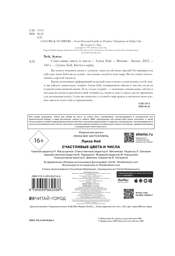 Книга: Счастливые цвета и числа (Луиза Хей); Эксмо, 2010