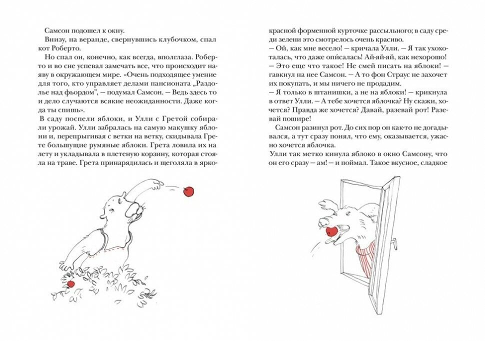 В пансионате пса Самсона и кота Роберто постояльцев немного, но дела все равно идут неплохо. Пес и кот вместе с друзьями собирают осенний урожай яблок. Вдруг откуда ни возьмись появляется страшно несимпатичный злобный пес Людо Карсон, якобы назначенный новым шерифом. Жизнь в "Раздолье над фьордом" сразу сходит с привычной колеи - новый шериф постоянно следит за обитателями пансионата, ругается и грозит тюрьмой. А тут еще одну из комнат занимает какой-то подозрительный парикмахер-итальянец, разыскивающий древний рецепт бузинного сока...