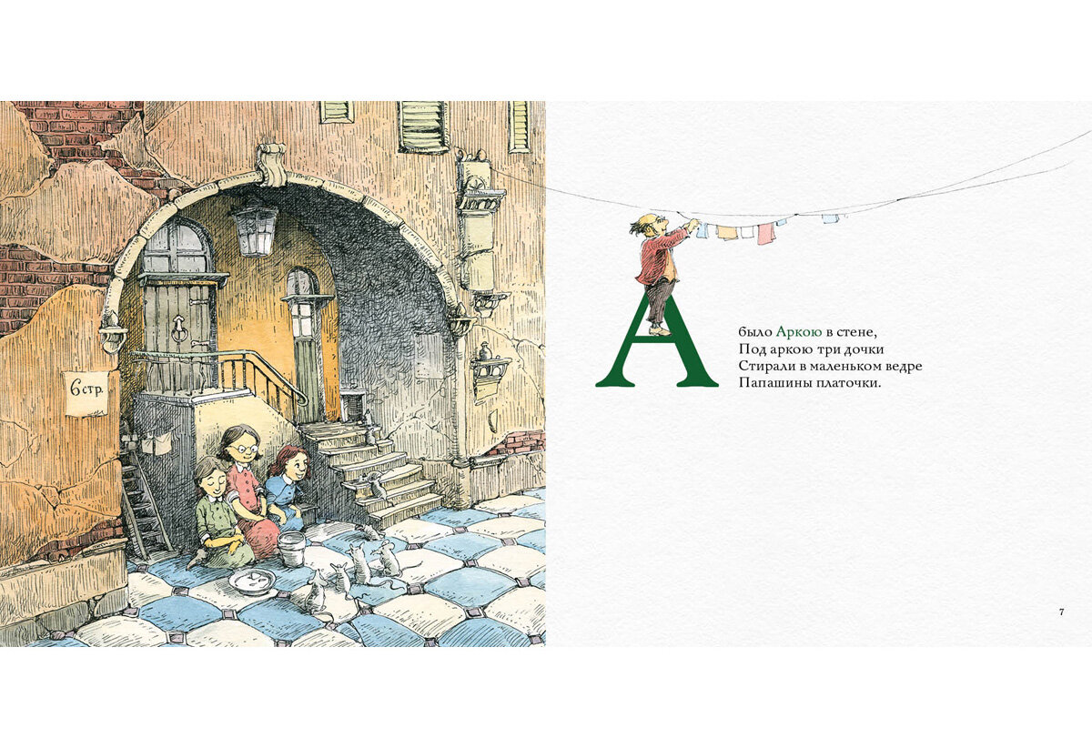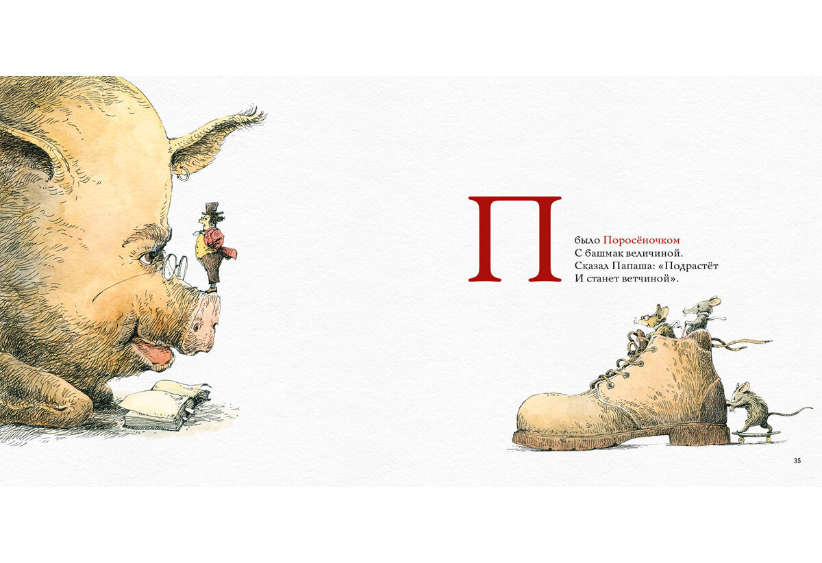 На каждую букву дан отдельный разворот. забавное четверостишие про Папашу и очень атмосферная иллюстрация.Стоит знак 6+,с чем я очень согласна,хотя...