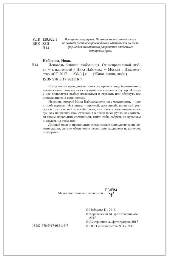 Исповедь бывшей любовницы. От неправильной любви - к настоящей (Ника Набокова); Издательство АСТ, 2016