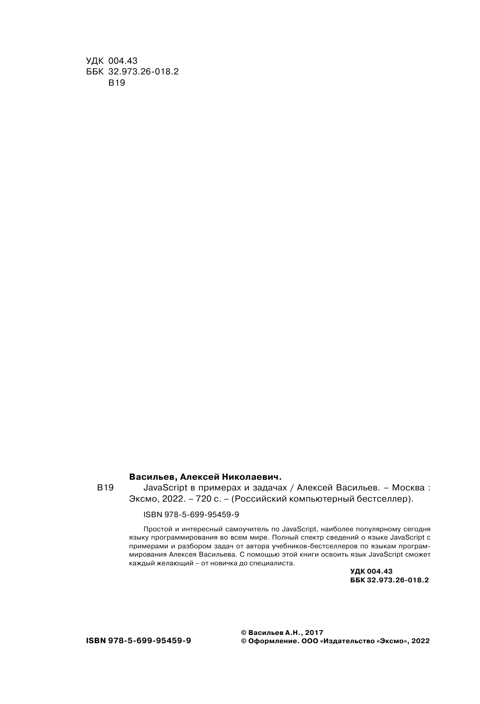 JavaScript в примерах и задачах (Алексей Николаевич Васильев); Эксмо, 2025