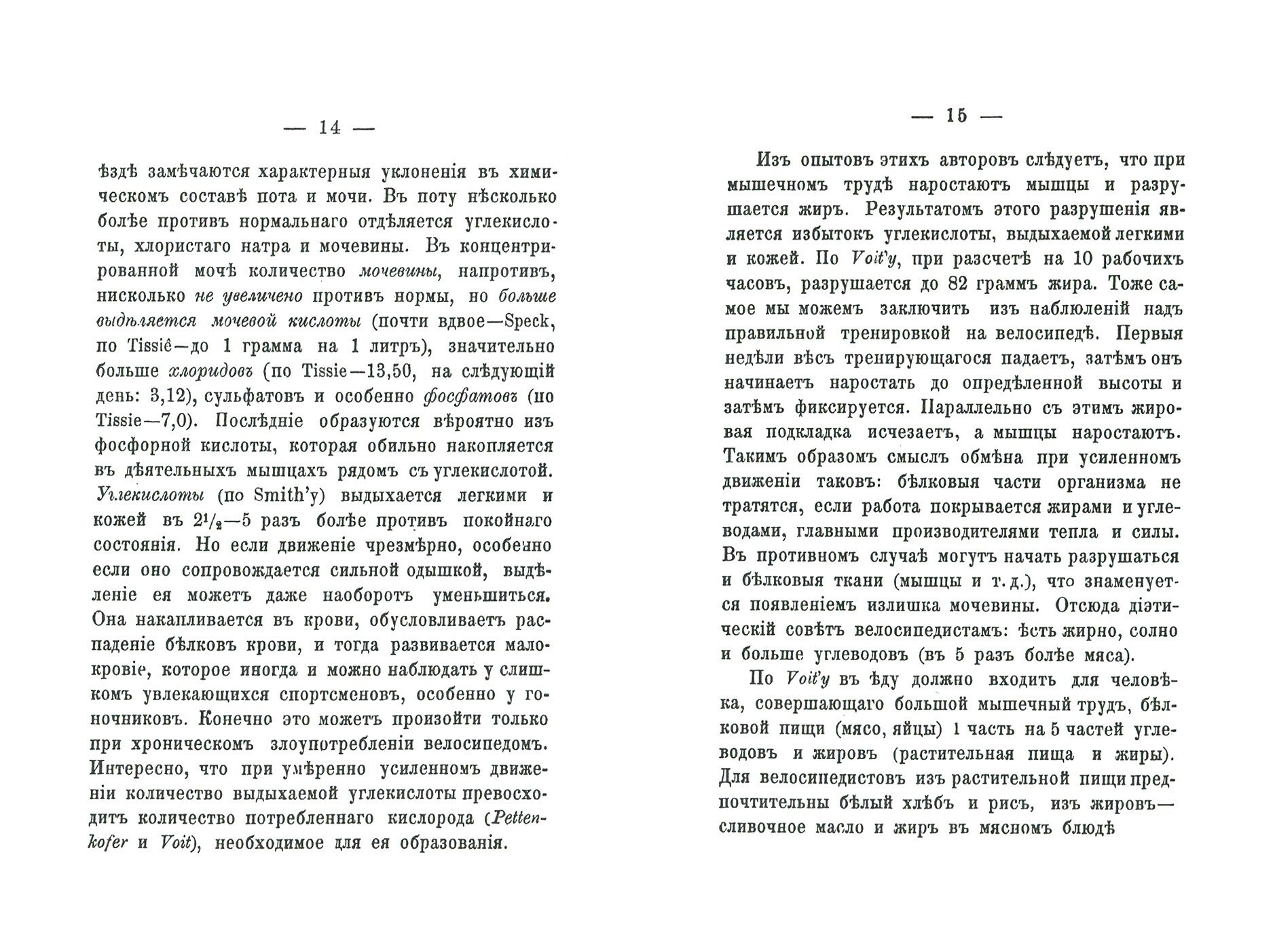 Велосипедная езда набирает все большую популярность, эта брошюра будет интересна всем любителям умеренного велосипедного передвижения.Д-р Л.П. Боголепов предупреждает о дурных последствиях "велофильства" и неосмысленного "велофобства", а также сообщает о положительном влиянии велосипедной езды на все органы мышц, на нервную систему и органы дыхания. Он пишет, что человечество должно бросить метафизические фантазии и здравым взглядом окинуть пройденный им путь ошибок, чтобы впредь их избегать в воспитании поколения сильного душой и телом. Издание репринтное 1895, время, когда велосипед только изобрели, поэтому, кажется, немного наивным и ироничным, но в целом приятным.