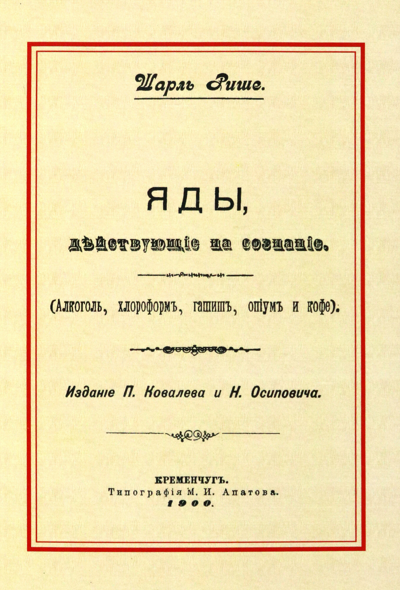 Яды действующие на сознание. Алкоголь хлороформ гашиш опиум и кофе. (Рише Шарль); Секачев В. Издательство, 2017