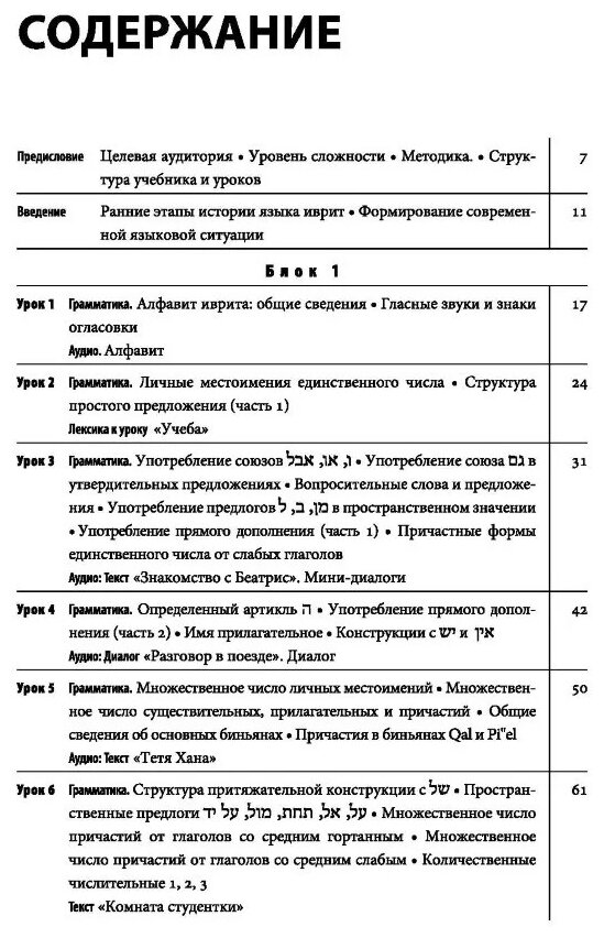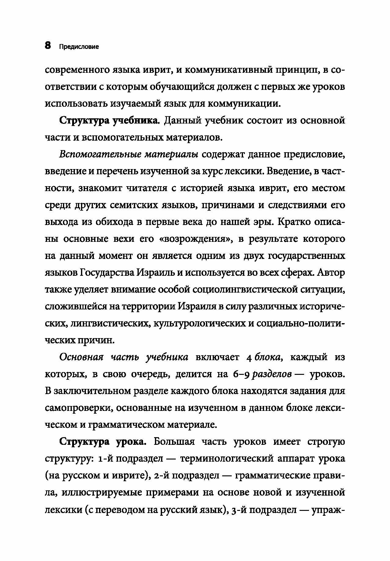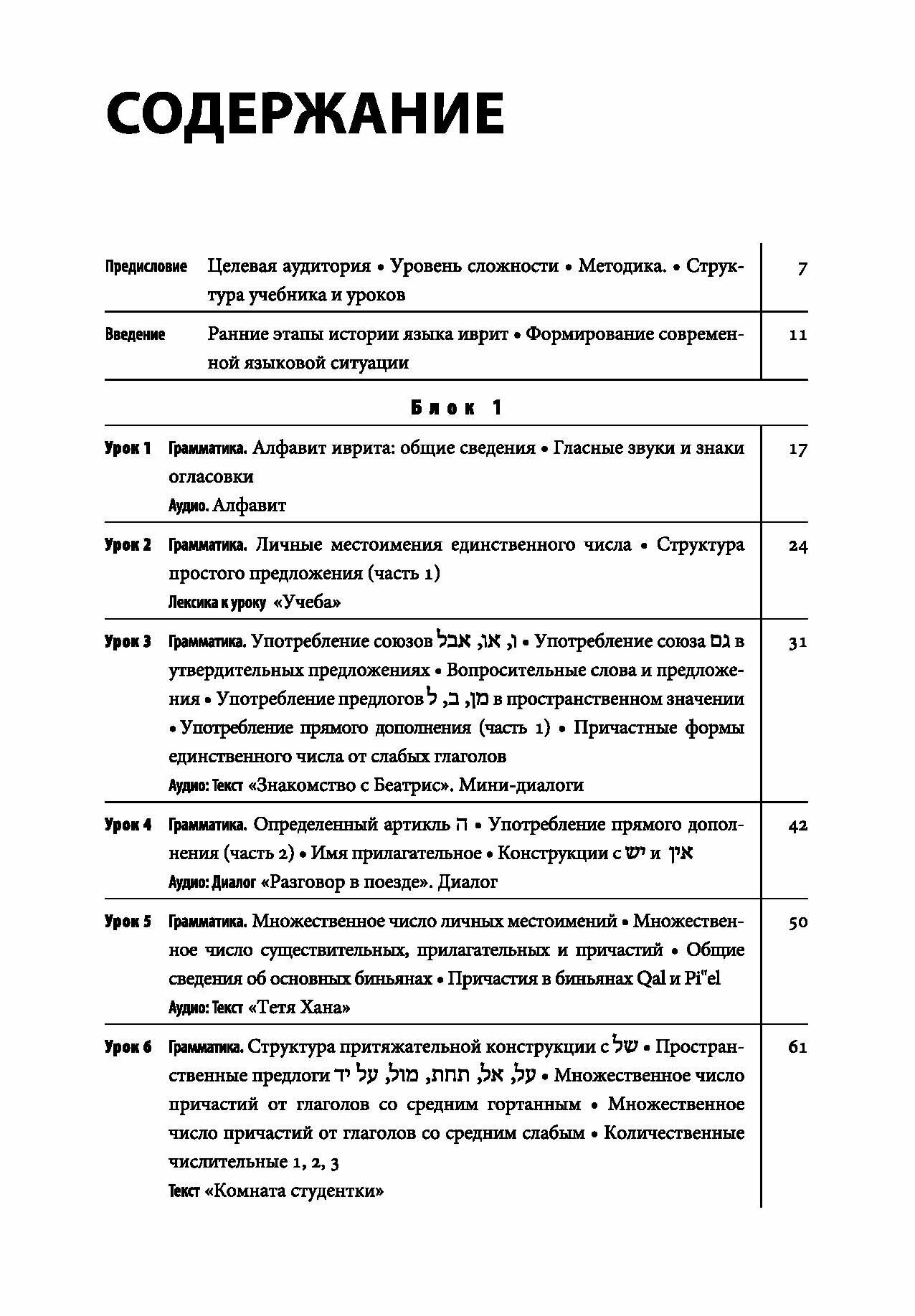 Предлагаем вашему вниманию учебник современного иврита, подготовленный преподавателем кафедры семитологии и гебраистики СПбГУ Марией Евгеньевной Алексеевой. Представленный в книге лексико-грамматический материал ориентирован на неподготовленного читателя и имеет целью постепенное повышение уровня владения языком, материал излагается по принципу "от простого к сложному". Комбинация двух принципов изучения языка - грамматического и коммуникативного - позволяет осознать грамматические нормы иврита и с первых уроков использовать изучаемый язык для коммуникации. Предполагаются занятия под руководством преподавателя, но при условии систематического обращения к качественной справочной литературе учебник можно использовать для самостоятельной работы.