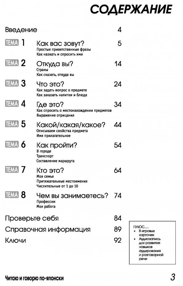 Странное пособие. Учить японский, не освоив хирагану и катакану, только опираясь на зрительное освоение знака-тогда нужно брать видео или аудиокурс. Нигде не указано, что диск надо приобретать отдельно, хотя везде указано , что"аудиокурс содержит интерактивные упражнения и т.д.".