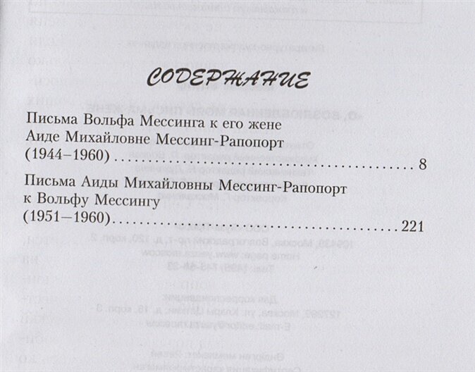 Очень нежная, печальная и трогательная книга. Она раскрывает совсем другого Мессинга – любящего, заботливого и влюбленного. Конечно, кроме личной переписки есть и некоторые очень интересные и даже актуальные предсказания, о которых можно узнать между строк. С удовольствием читаю все, что написано Вольфом Мессингом, так как считаю его исключительно честным, незаурядным, а теперь и очень трогательным человеком. Очень рекомендую!