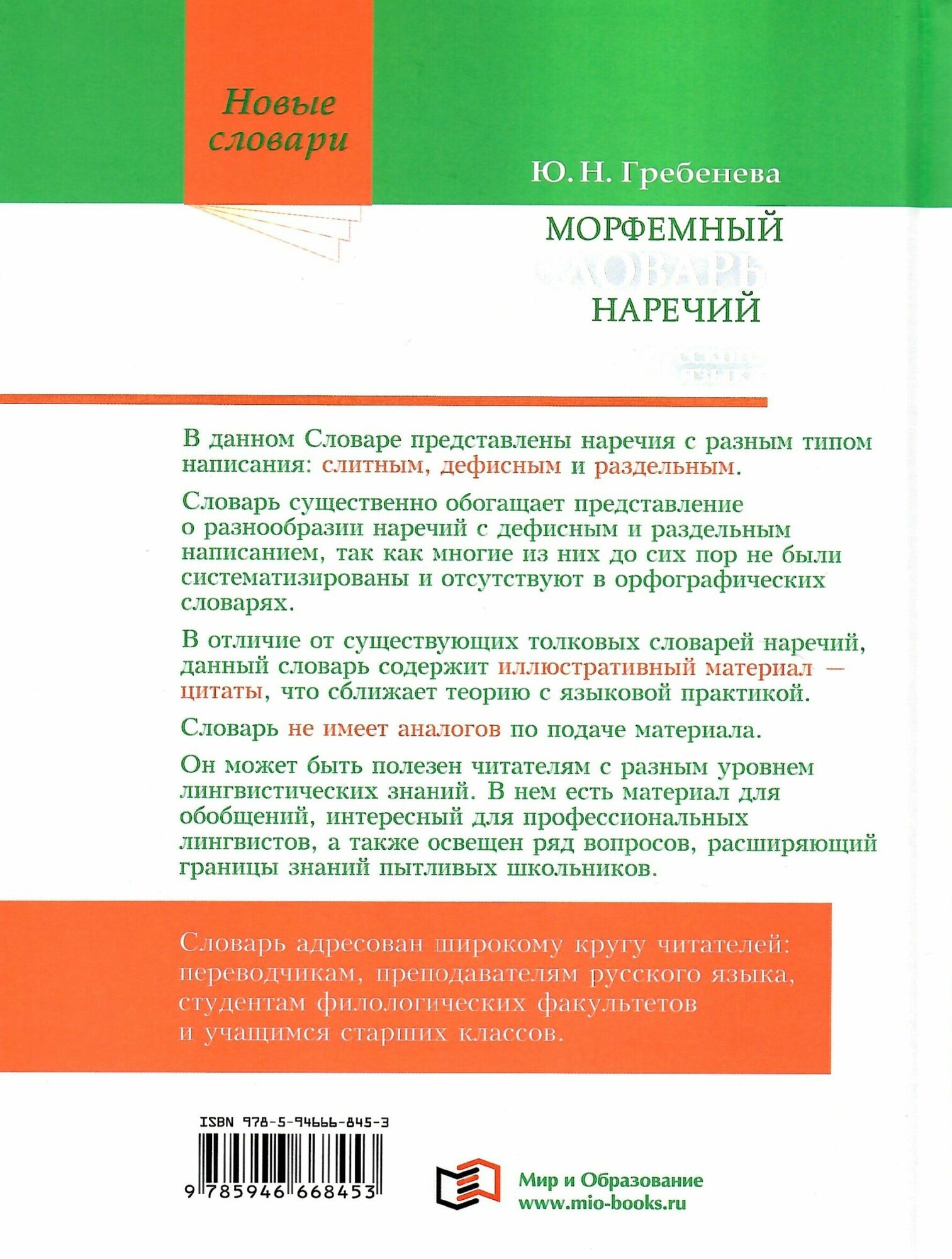 Морфемный словарь наречий русского языка (Гребенева Юлия Николаевна); Мир и Образование, 2021