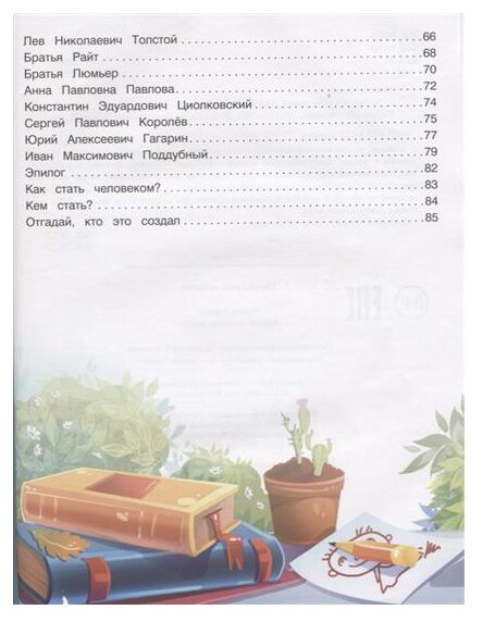 Братья Люмьер и Райт, А.П.Павлова, Л.Н.Толстой, П.И.Чайковский, С. В.Ковалевская, П.М.Третьяков и ещё много других известных людей встречают нас каждый вечер, рассказывая о своей жизни, достижениях и открытиях. Такая книга обязательно должна быть у ребенка и ежевечерняя просьба дочери почитать, что-нибудь об интересных людях тому подтверждение.