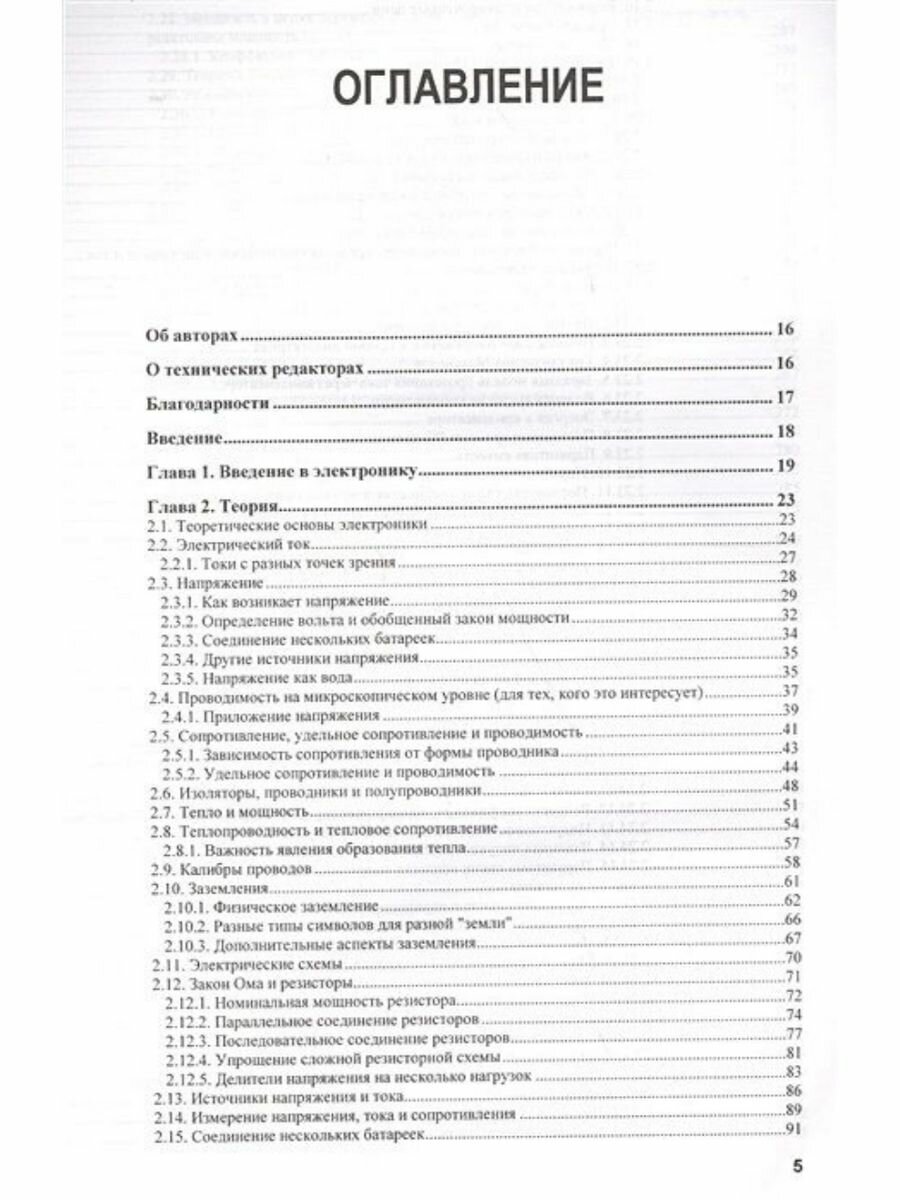 В практическом руководстве излагаются основы электричества и разработки электронных устройств. Рассмотрено применение базовых компонентов, полупроводников, оптоэлектронных элементов и датчиков. Описана разработка и практическое применение операционных усилителей, фильтров, генераторов колебаний, таймеров, стабилизаторов и источников питания. Показано использование логических микросхем, жидкокристаллических и светодиодных дисплеев. Рассмотрены микроконтроллеры и платформы для разработки прототипов устройств, включая плату Arduino. Описано подключение электродвигателей постоянного тока, сервоприводов и шаговых двигателей, а также микрофонов, аудиоусилителей и громкоговорителей. Материал сопровождается подробными и доходчивыми инструкциями, принципиальными схемами и иллюстрациями. В четвертом издании книги добавлены полностью новые главы по датчикам, микроконтроллерам, модульной электронике и самым последним версиям программных инструментов.