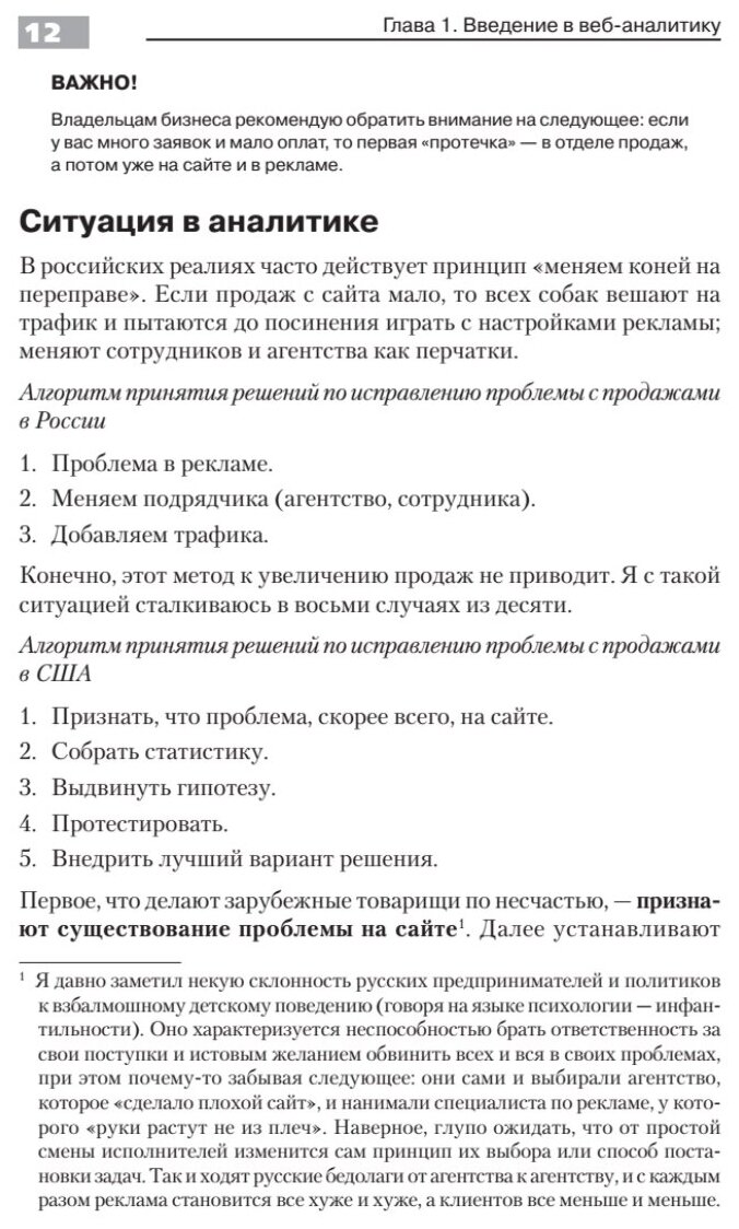 Книга действительно полезная и актуальная, круто, что наконец-то кто-то написал об аналитике на русском языке, с русскоязычными скриншотами. Также даются советы по оптимизации конверсии интернет-магазина в целом, не только применительно к рекламным кампаниям.
