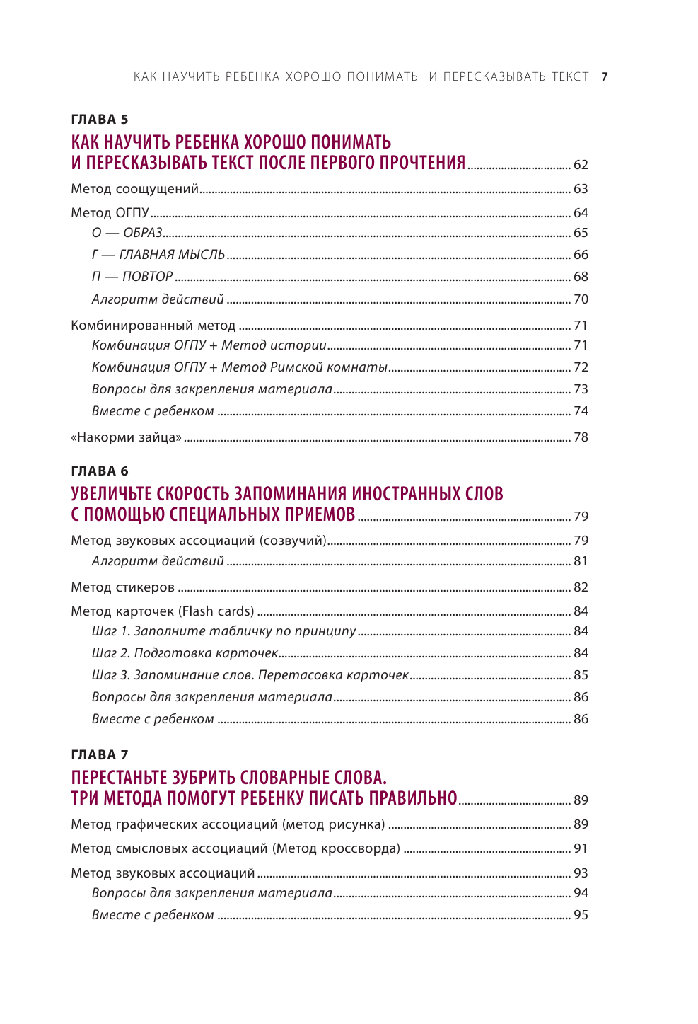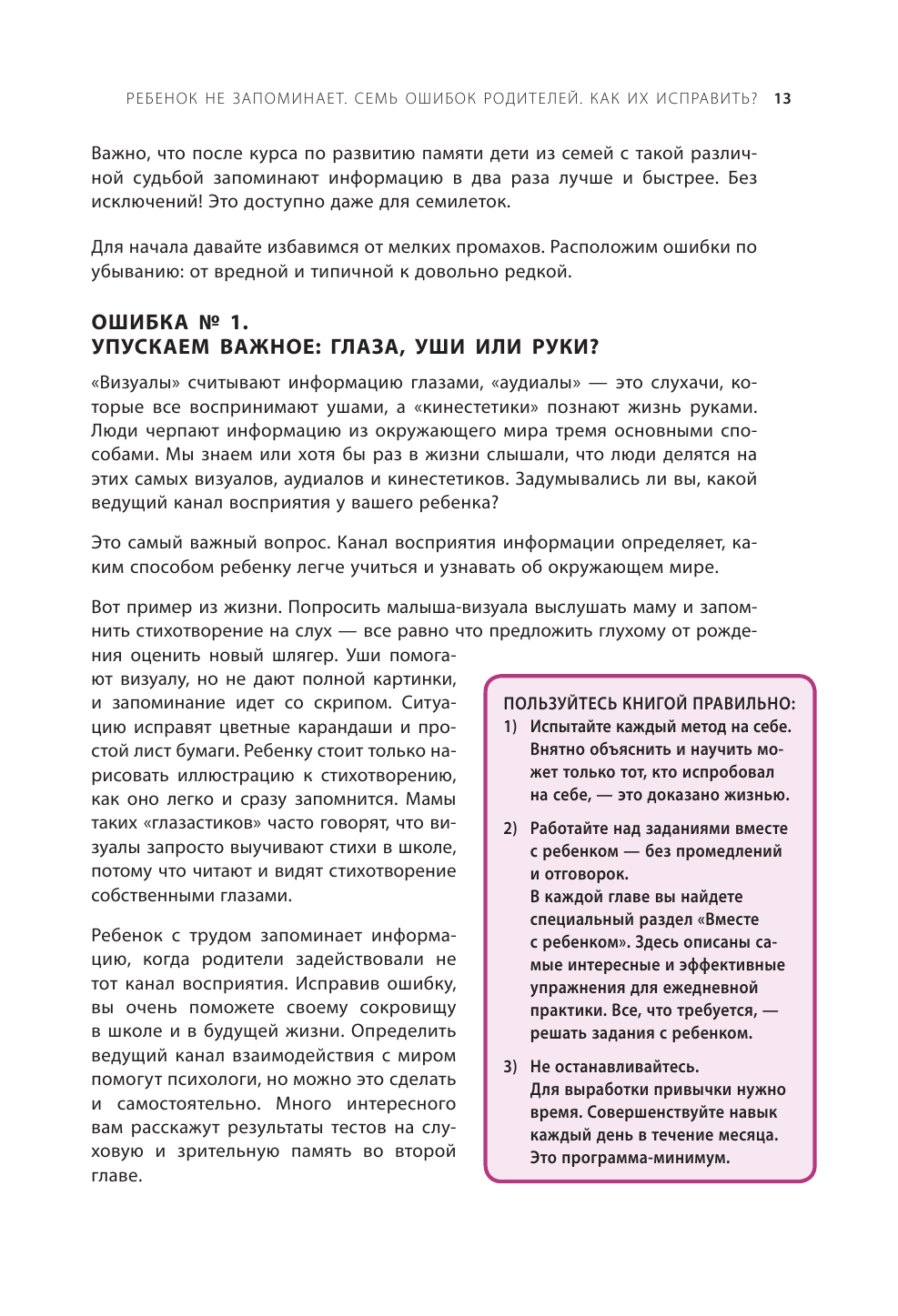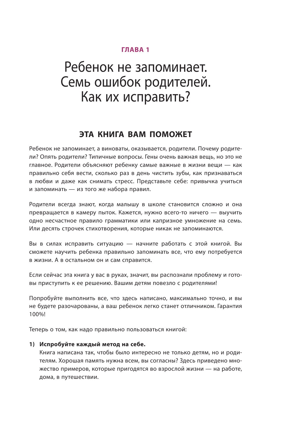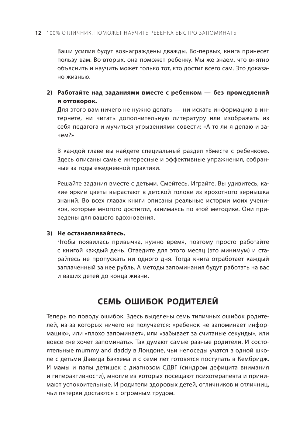 Книга похожа на рабочую тетрадь скорее, чем на учебник или просто рассуждения на тему «Как сделать так, чтобы ребенок лучше учился?» После каждой главы есть специальные задания на закрепление материала. Теперь нам, это мне и дочке, которая сначала очень сопротивлялась заниматься, от этой книжки не отлипнуть. Лиза ждёт с нетерпением, когда приду с работы, и мы начнём наши тренировки по шоколадке.)))))))