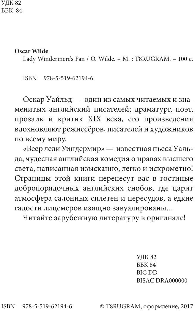 Книга: Lady Windermere's Fan (Оскар Уайльд); RUGRAM, 2017