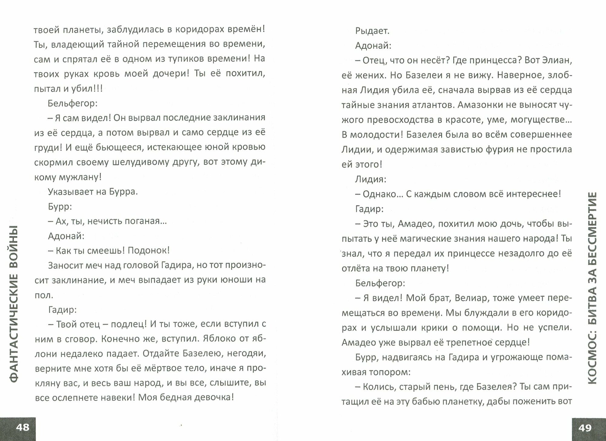 Новая книга Карины Сарсеновой включает драматические произведения в жанре боевого фэнтези "Космос: битва за бессмертие" и "Космос: битва за бессмертие-2", "Желать нельзя отказывать" (фантастическо-эротическую комедию) и мистический триллер "Цена страха". Их объединяет общая главная тема - война человека с самим собой, та наиглавнейшая война, на фоне которой разворачиваются все жизненные битвы. И от того, кто победит в этой битве - светлое или тёмное начало человека - зависит очень многое…