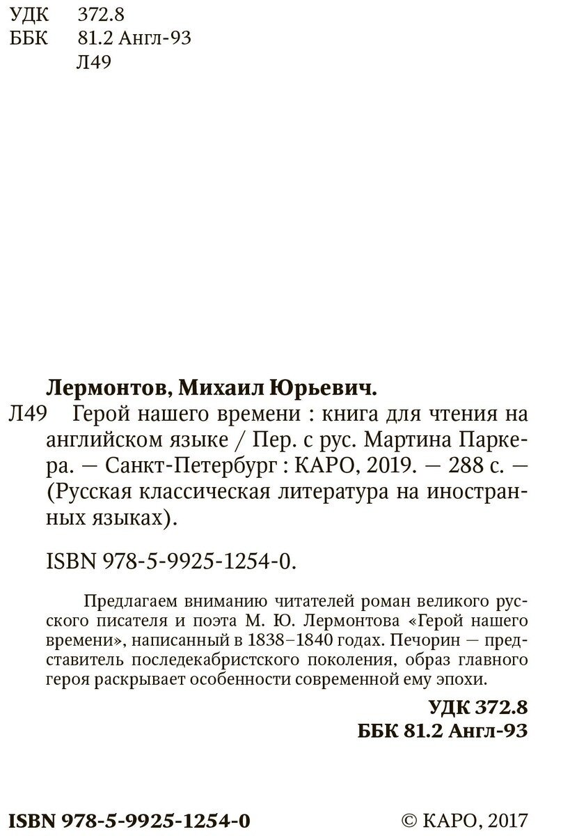 Никогда бы не подумала, что русские произведения будет так интересно читать на английском языке. “Герой нашего времени” - мой любимый роман Лермонтова, и у меня имеется это произведение аж от двух изданий, и эта книга стала третьей в моей коллекции “Героя...”. Сначала я думала, что текст произведения будет сложным, но он оказался, на самом деле, очень легким!!!Подойдет для среднего уровня (В1, В2 - как я считаю). У меня очень легко получалось художественно переводить текст, имея средний уровень английского. Очень хороший вариант для прокачки знаний и лексики. Рекомендую купить эту книгу, вы точно не разочаруетесь! Обложка прикольная, страницы и шрифт стандартные.