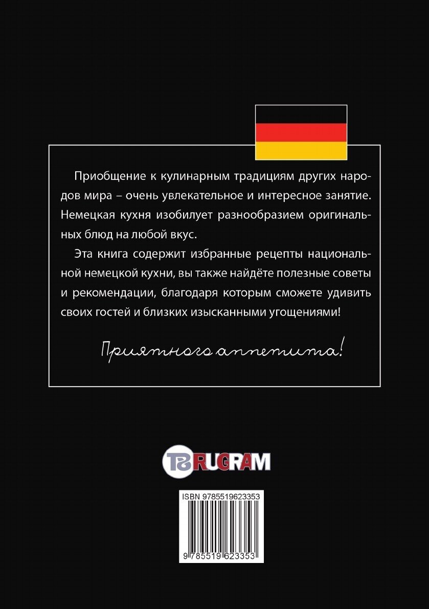 Эта книга содержит избранные рецепты национальной немецкой кухни, вы также найдёте полезные советы и рекомендации, благодаря которым сможете удивить своих гостей и близких изысканными угощениями!