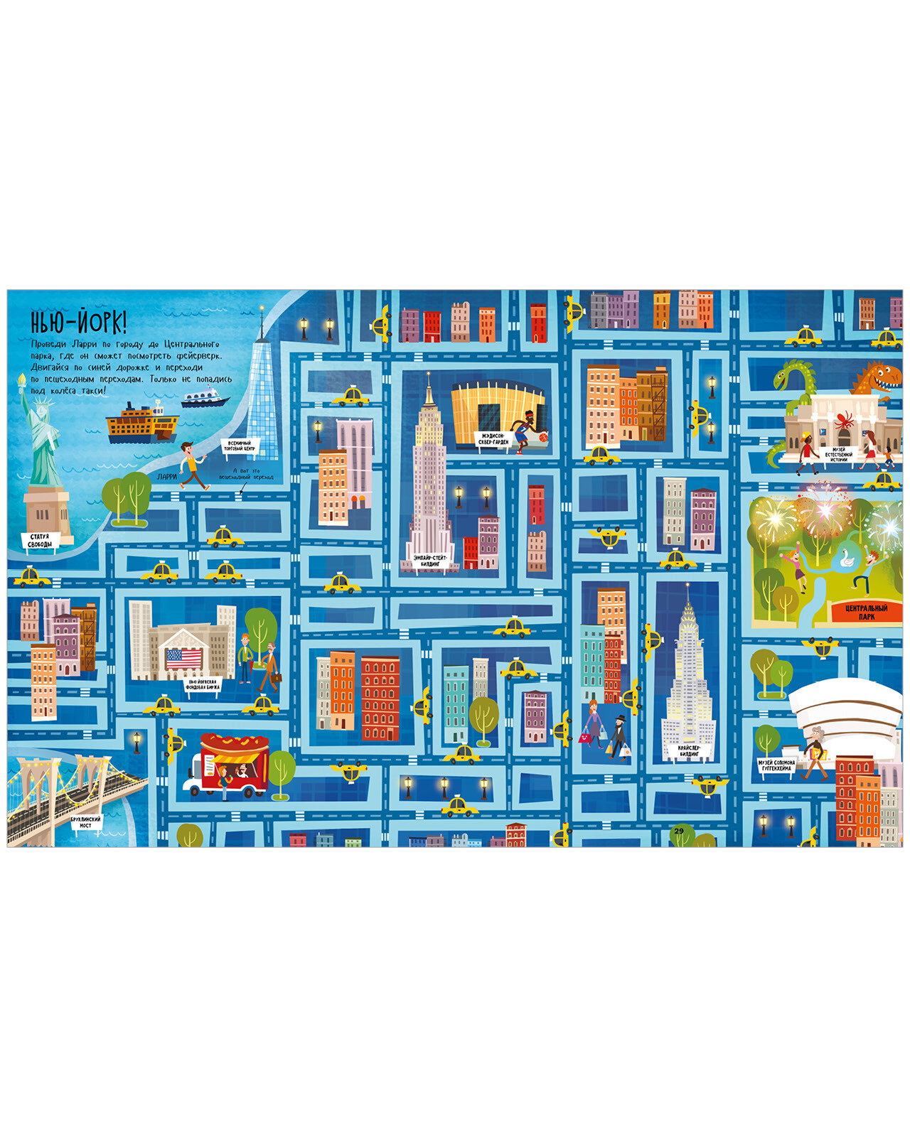 Хорошее пособие для первого знакомства ребёнка с географией в игровой форме. Отгадывая лабиринты ребёнок познакомится с континентами (их названиями, обитателями и достопримечательностями) и такими всемирно известными городами, как Париж и Нью-Йорк. Книга развивает в детях любознательность и поможет научиться в будущем легко ориентироваться в картах -полезный навык для путешественников)