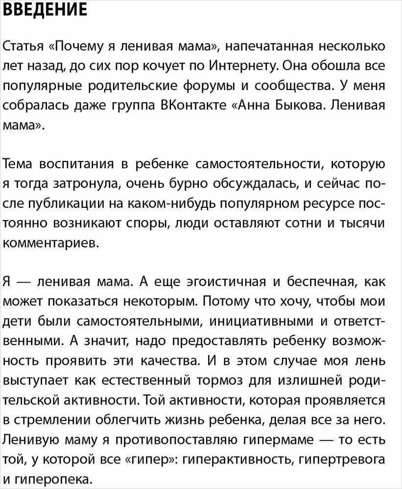 В своих книгах Анна Быкова пишет о том, как постепенно, день за днем, предоставлять ребенку чуть больше свободы и передавать ответственность. О том, как не изводить себя чувством вины, как с первого дня понимать, что ребенок - это личность.