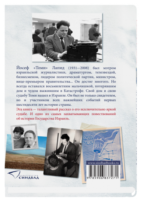 В этой книге историю своей жизни рассказывает Томи Лапид - популярнейший израильский журналист, драматург, телеведущий, руководитель крупнейшей газеты и Гостелерадио, министр юстиции, вице-премьер, лидер политической партии... В этой книге - его голос, его характер и его дух. "...Моя биография настолько полна противоречий, что порой мне казалось, что я вобрал в себя всех, кого когда-либо встречал. Я был самым знаменитым атеистом в Израиле, откровенным и рьяным противником ортодоксов, но представлял собой классический пример еврейской судьбы. Меня ненавидели, но я был очень популярен - образованный и благовоспитанный европейский интеллектуал и одновременно страстный трибун, шовинист-консерватор, способный по достоинству оценить красивую женскую фигуру, и любящий муж известной писательницы-феминистки, основавший первый в стране женский журнал. Я прожил жизнь страстно, без угрызений совести, как только и мог жить человек, чудом избежавший верной смерти..." Но написал ее сын Томи - Яир, известный журналист и телеведущий. Это очень личная история человека и одновременно история становления государства Израиль, свидетелем и самым активным участником которой был Томи Лапид.