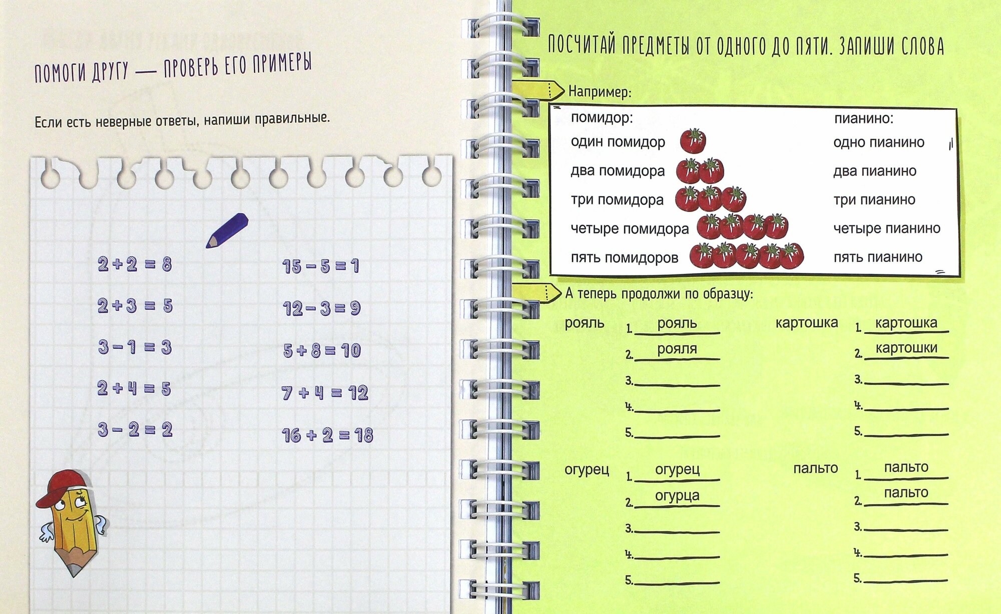 Это не просто блокнот. Это "игровая обучалка", включающая более 100 увлекательных заданий на чтение и развитие речи, логики, внимания, памяти и др. Ребенок научится сочинять сказки, решать примеры, проходить лабиринты, приобретет художественные навыки и многое другое. А поможет ему забавный персонаж - Веселый Карандаш!