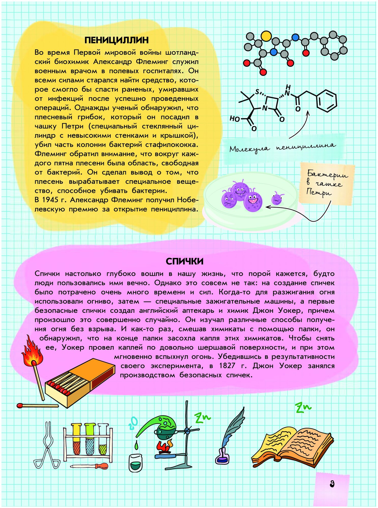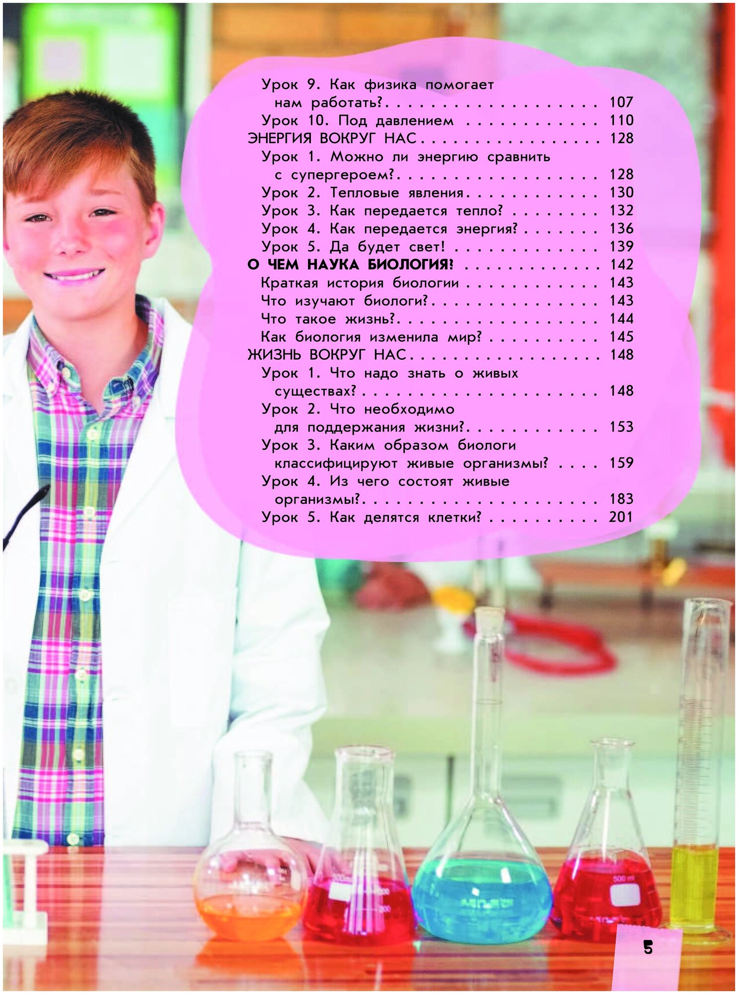 Хочешь узнать, что изучают различные науки, например такие, как химия, физика, биология? А может быть, ты уже рассматриваешь варианты будущей профессии? Тогда ты выбрал правильную книгу. Прочитав ее, ты разберешься во многом, чего раньше попросту не понимал. Теперь ты будешь знать, чем химические реакции отличаются от ядерных, как появился пенициллин, что такое молочная кислота и почему во время интенсивных тренировок у нас болят мышцы тела. Также ты с легкостью ответишь, почему после дождя появляется радуга, что такое инерция, как передается тепло, почему йоги могут лежать на гвоздях. И, конечно же, поймешь, чем растительная клетка отличается от животной, все ли бактерии опасны и как наш организм защищается от вирусов. А главное - изучать науки тебе будет совсем не сложно: книга содержит в себе множество задач и увлекательных, пошагово описанных экспериментов, после проведения которых ты с легкостью усвоишь материал.