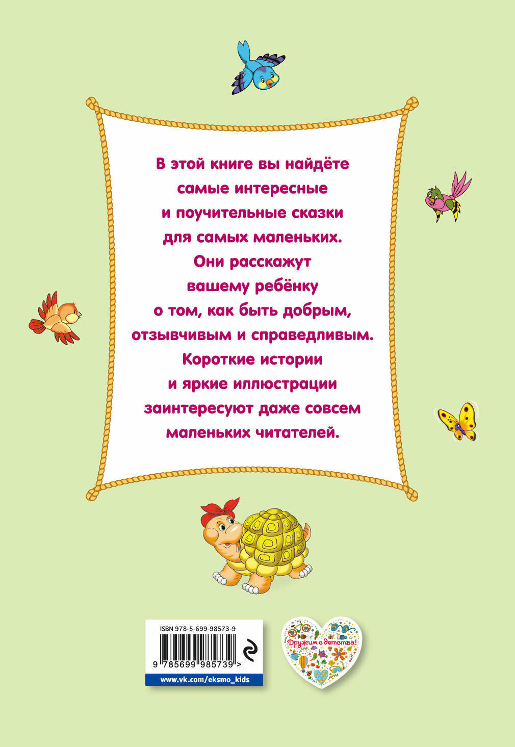 Старательная черепаха победила самонадеянного зайца в гонке; Голубка спасла Муравья, а он в ответ спас её; Зайчонок не послушался маму и чуть не попал в беду… Каждая сказка наглядно покажет ребенку простую, но важную идею, например, почему обманывать — плохо, а бескорыстно помогать другим — это хорошо.
