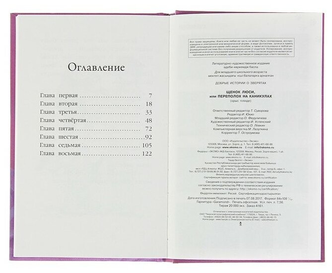На обложке книги нарисован очаровательный щенок. А внутри — белая бумага, крупный шрифт и очень красивые иллюстрации.