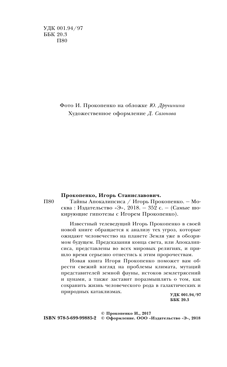Книга: Тайны Апокалипсиса (Игорь Прокопенко); Эксмо, 2017