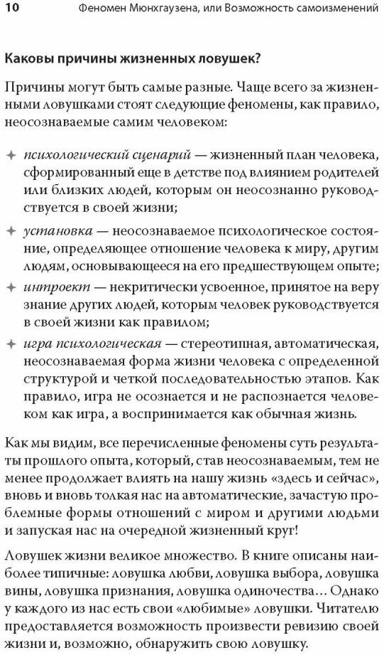 Вы ощущали, что с вами что-то происходит помимо вашей воли. Ваша жизнь попадала в ловушку, выхода из которой не было видно. Из этой книги вы узнаете, как справляться с жизненными ловушками, как выйти из тупика, если вы в него попали, как начать жить свободной и активной жизнью.