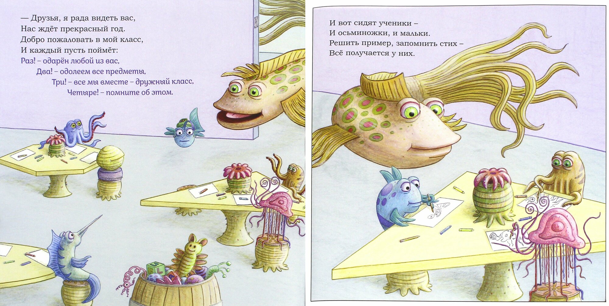 Надо обязательно поддержать маленьких рыбят-первоклашек, и показать, что школа она на то и школа, чтобы всему научиться. И что учиться — это весело.