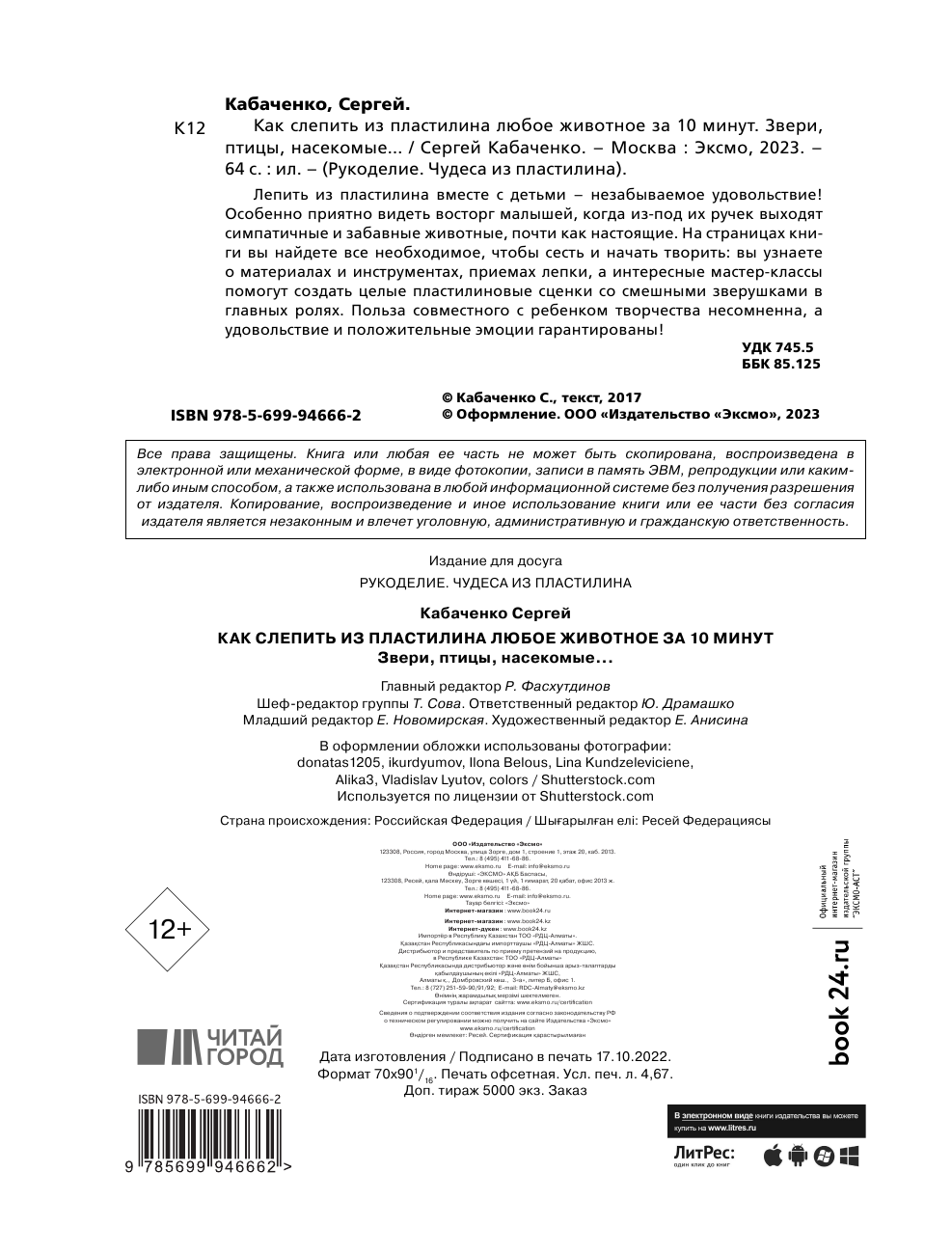 На сегодняшний день товар «Книга: Как слепить из пластилина любое животное за 10 минут. Звери птицы насекомые... (Кабаченко Сергей Борисович); ООО "Издательство "Эксмо", 2020» можно купить с кешбеком в 5 магазинах: book24, ЛитРес, Буквоед, Яндекс.Маркет, Читай-город
