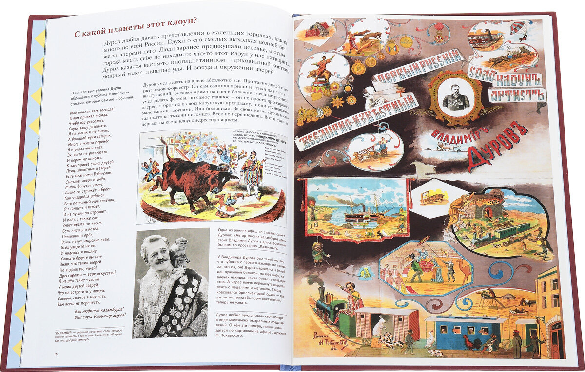 Часть книги посвящена биографии великого дрессировщика Дурова, часть книги о цирке как таковом, откуда взялось слово цирк и т.д Книга немного разочаровала иллюстрациями, по поводу биографических изображений претензий нет, сама обложка более многообещающе выглядит чем ее содержание. Совместили прочтение данной книги с походом в театр дедушки Дурова!
