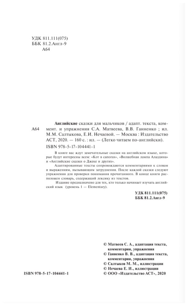 На сегодняшний день товар «Книга: Английские сказки для мальчиков / English Fairy Tales for Boys (Группа авторов); Издательство АСТ, 2017» можно купить с кешбеком в 1 магазине: ЛитРес