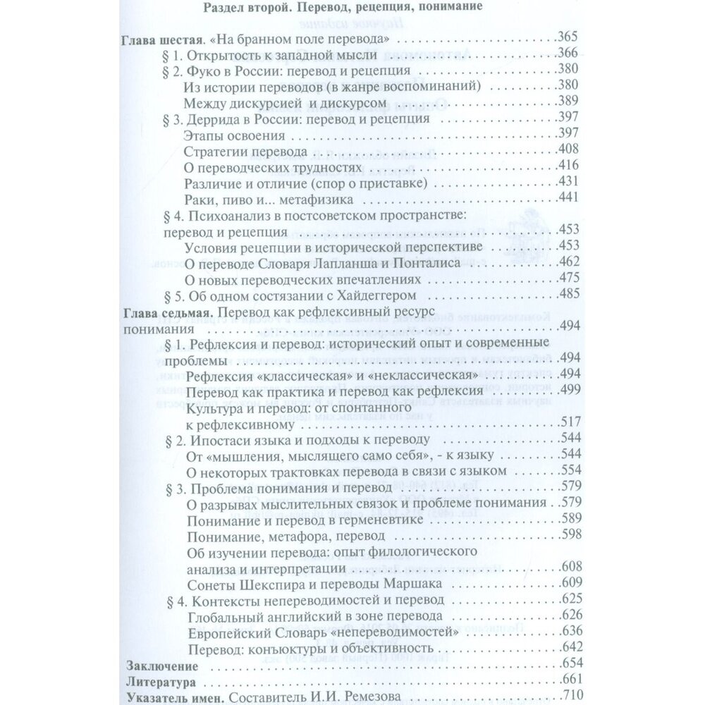 Тема "познание и перевод" сопровождала автора всю жизнь: от университетской курсовой о переводах Шекспира, через "Слова и вещи" Фуко, изданные в период "застоя", к недавним переводам работ из области психоанализа и деконструкции. А потому "познание и перевод" - это сфера личного опыта, в которой много всего - и практики, и размышлений по ходу дела, и сопоставления подходов к переводу в разные периоды и в разных странах. Перевод - антропологическая константа человеческого бытия и условие возможности познания в гуманитарных науках; вместе с тем это не чисто академическая материя, но сфера страстей и столкновений. Почему перевод стал в наши дни философской проблемой? Обо всем этом и пойдет речь в книге. В ней два раздела: первый - о познании и языке, второй - о переводе как рефлексивном ресурсе понимания.