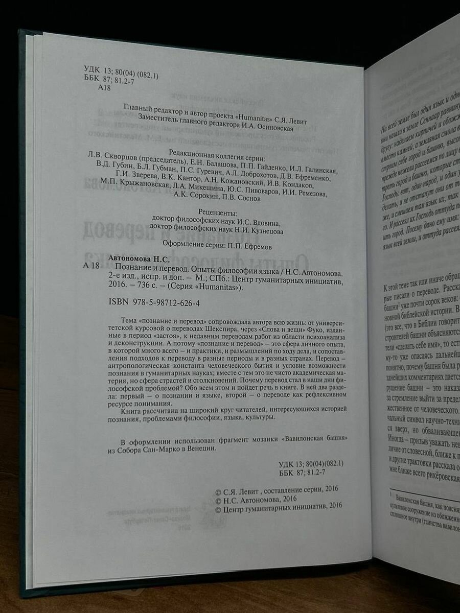 Познание и перевод. Опыты философии языка (Автономова Наталья Сергеевна); Центр гуманитарных инициатив, 2017
