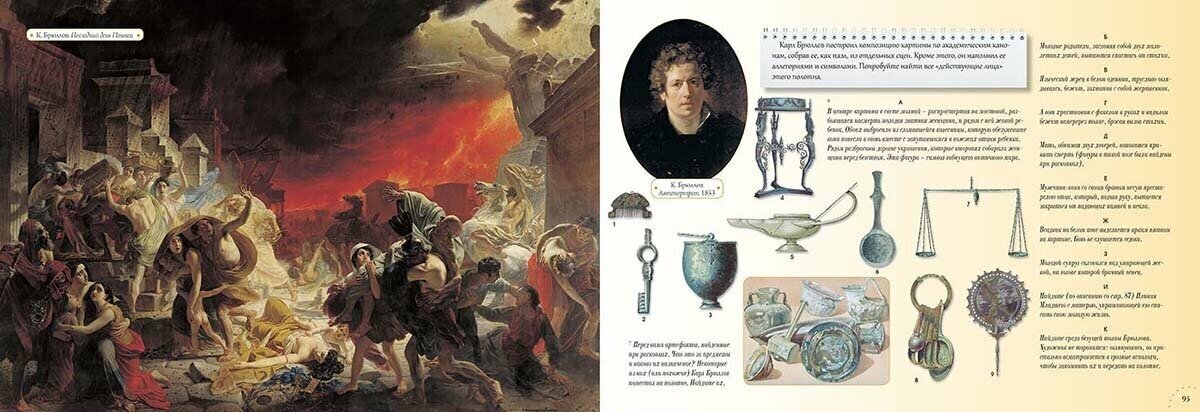 На исторических полотнах такое количество деталей, что по ним запросто можно изучать историю. В книге есть даже лента времени с обозначением основных событий истории, и всё это привязано к произведениям искусства!