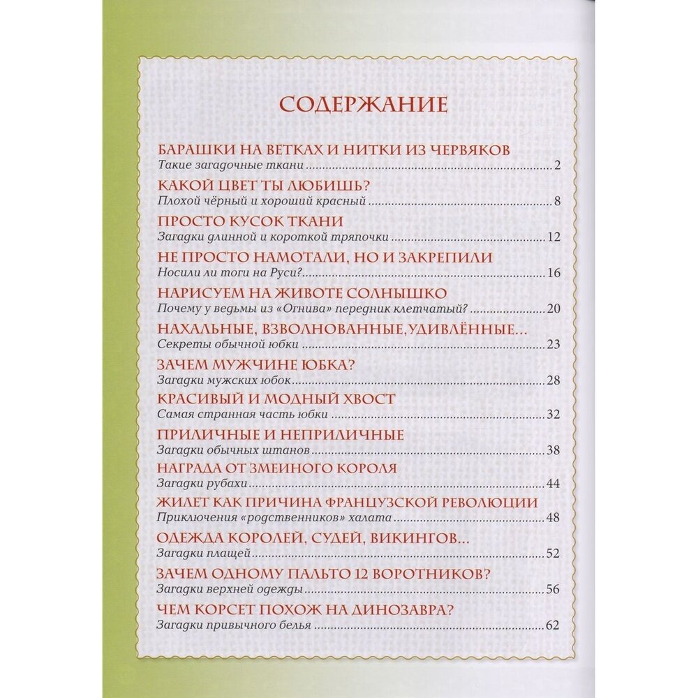 Прочитав книгу, читатель узнает историю нравов и обычаев народов, увидит удивительные костюмы. Поймет, откуда взялась мода и почему люди уделяют ей так много внимания. А еще он узнает, из чего сделана первая рубашка и во что одевались эльфы.