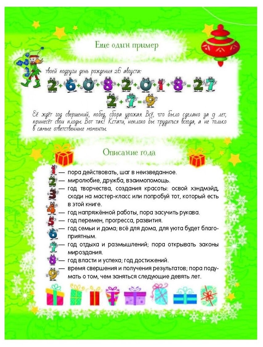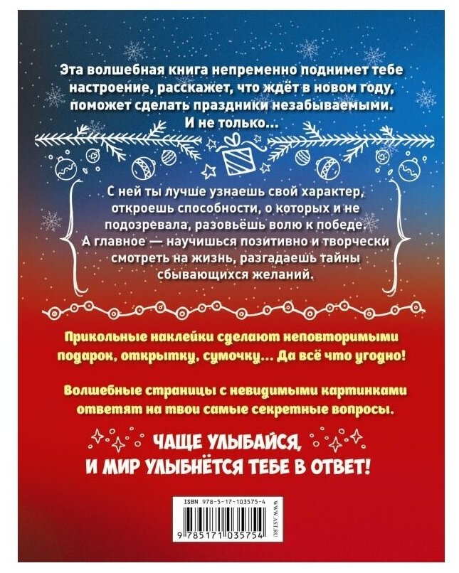Эта книга - лучший подарок на Новый год каждой девочке. Она поможет сделать праздник незабываемым, подарит счастье, исполнит самые заветные желания. А ещё она станет лучшим другом и советчиком. Достаточно заштриховать простым карандашом пространство внутри рамки на 16 волшебных страницах - и перед тобой возникнет ответ-картинка на самый сокровенный вопрос. 80 прикольных наклеек сделают неповторимыми подарок или открытку, добавят индивидуальности любой вещи.