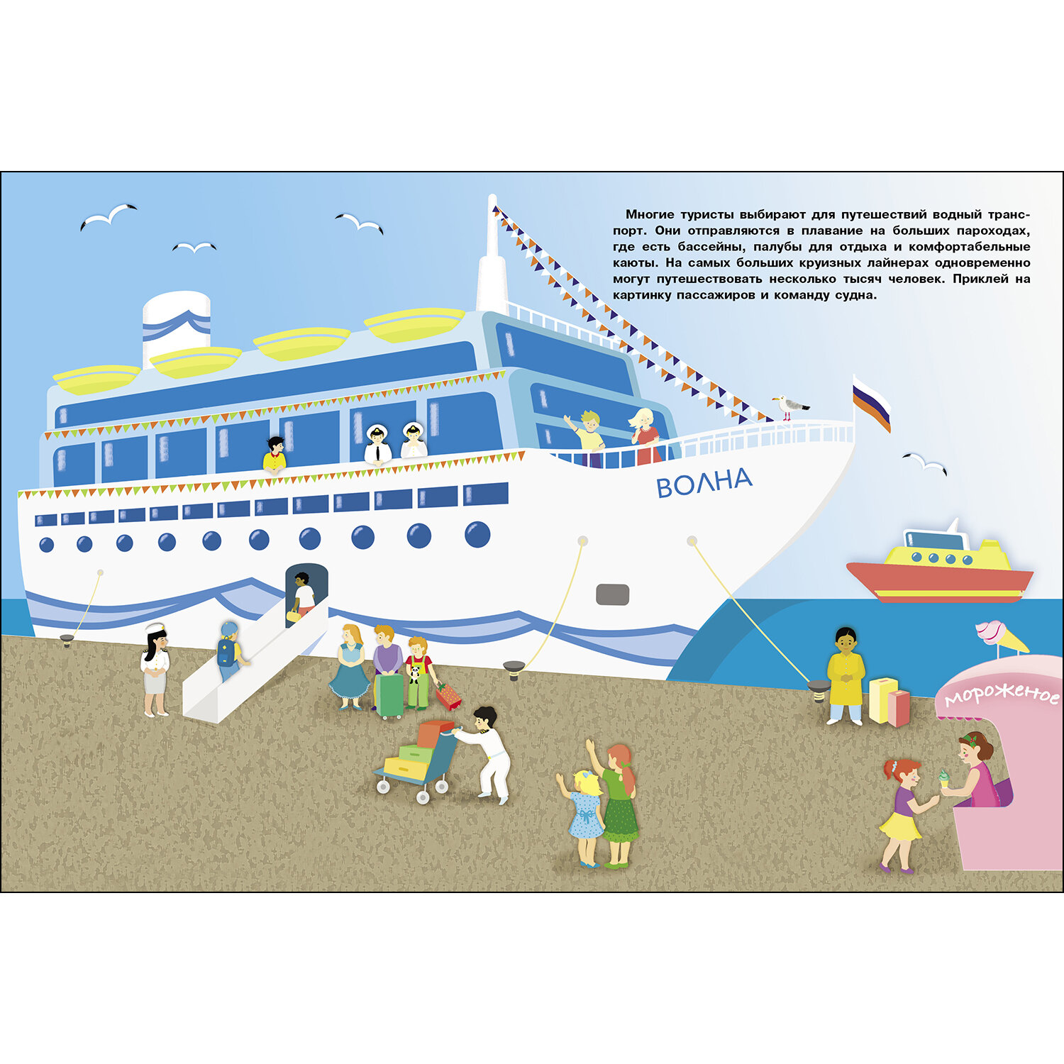 Мы приглашаем вашего малыша на увлекательную прогулку в порт. Здесь можно увидеть все виды водного транспорта - большие лайнеры и маленькие катера, грузовые баржи и парусники. Скорее открывайте книжку и приклеивайте наклейки!