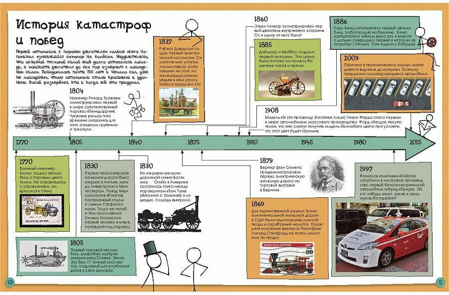 Купила для возраста восьми лет, некоторая терминология не совсем понятна в таком возрасте, но книга интересная, совершенно ненапрасная покупка. Листы довольно плотные, полностью окрашены, за счет чего, присутствует запах краски. Яркие иллюстрации, на которых показана техника в разрезе, что очень удобно.