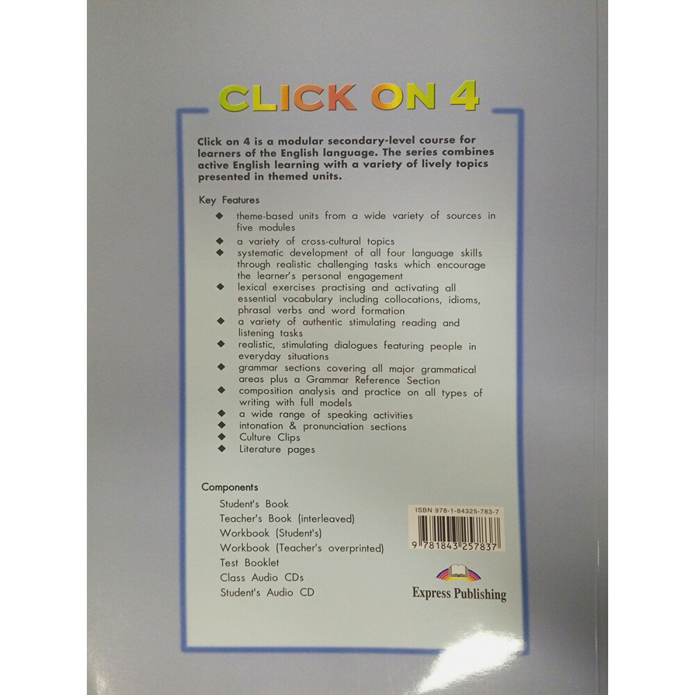 "Click On 4: Workbook: Student's" is a modular secondary-level course for learners of the English language. The series combines active English learning with a variety of lively topics presented in themed units.