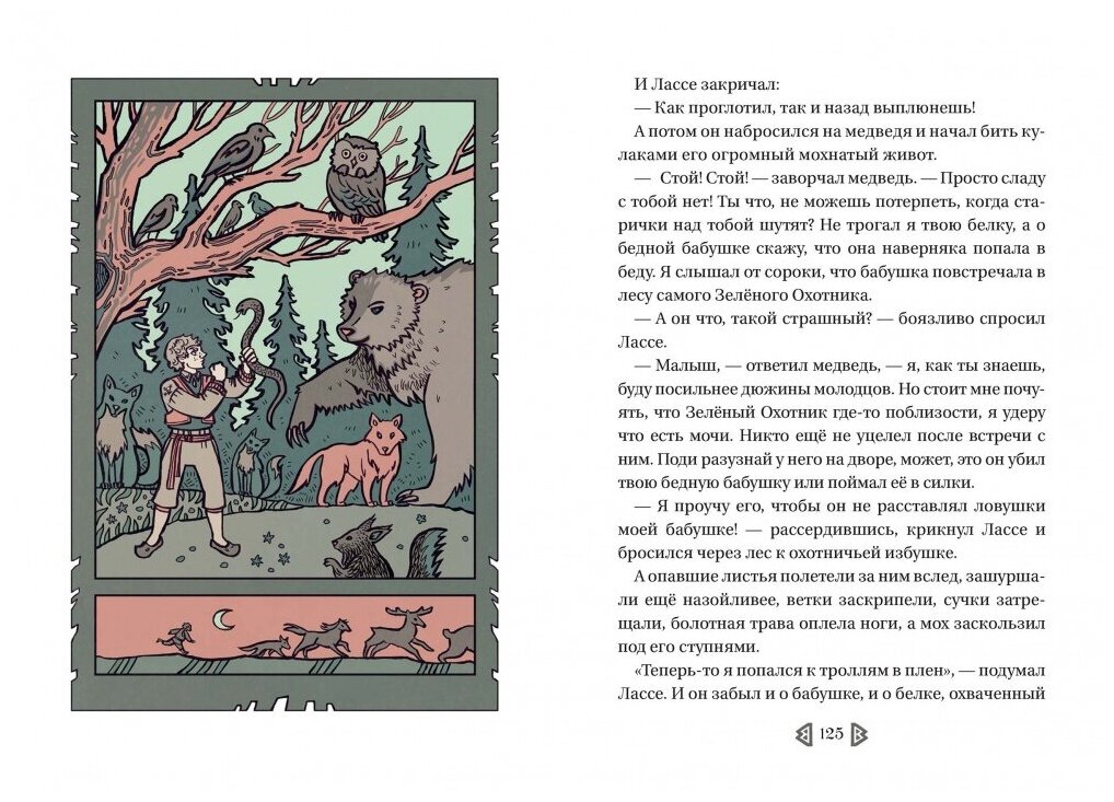 Первое что хочется отметить в этом издании книги - удивительные иллюстрации Юлии Никитиной. Оформление очень гармонично сочетается с содержанием. Палитра цветов, выбранная для обложки и картинок внутри передает ощущение северных лесов и холмов, где происходят волшебные истории, а украшенные буквицы сразу напомнили мне что я читаю книгу сказок!
