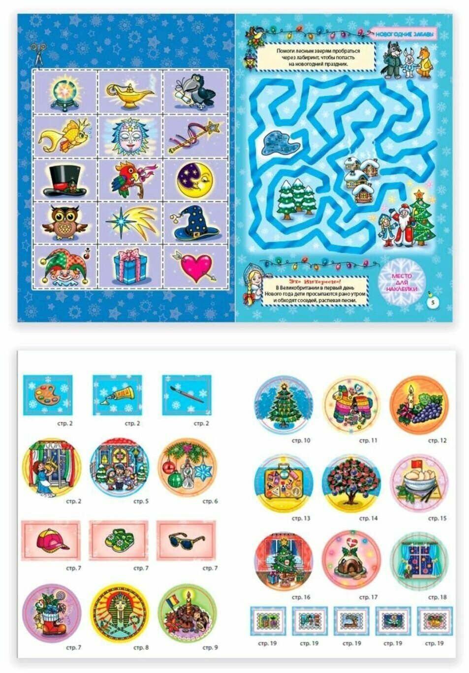 На страницах брошюры малышей ждут весёлые головоломки,раскраски, полезные новогодние поделки,рецепты, письмо Деду Морозу и забавная аппликация. Книжка расскажет о новогодних обычаях и традициях. Внутри ребёнка ждут более 20 красочных наклеек!