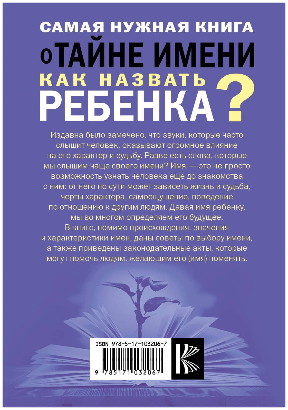 В книге, помимо происхождения, значения и характеристики имен, даны советы по выбору имени, а также приведены законодательные акты, которые могут помочь людям, желающим его (имя) поменять.