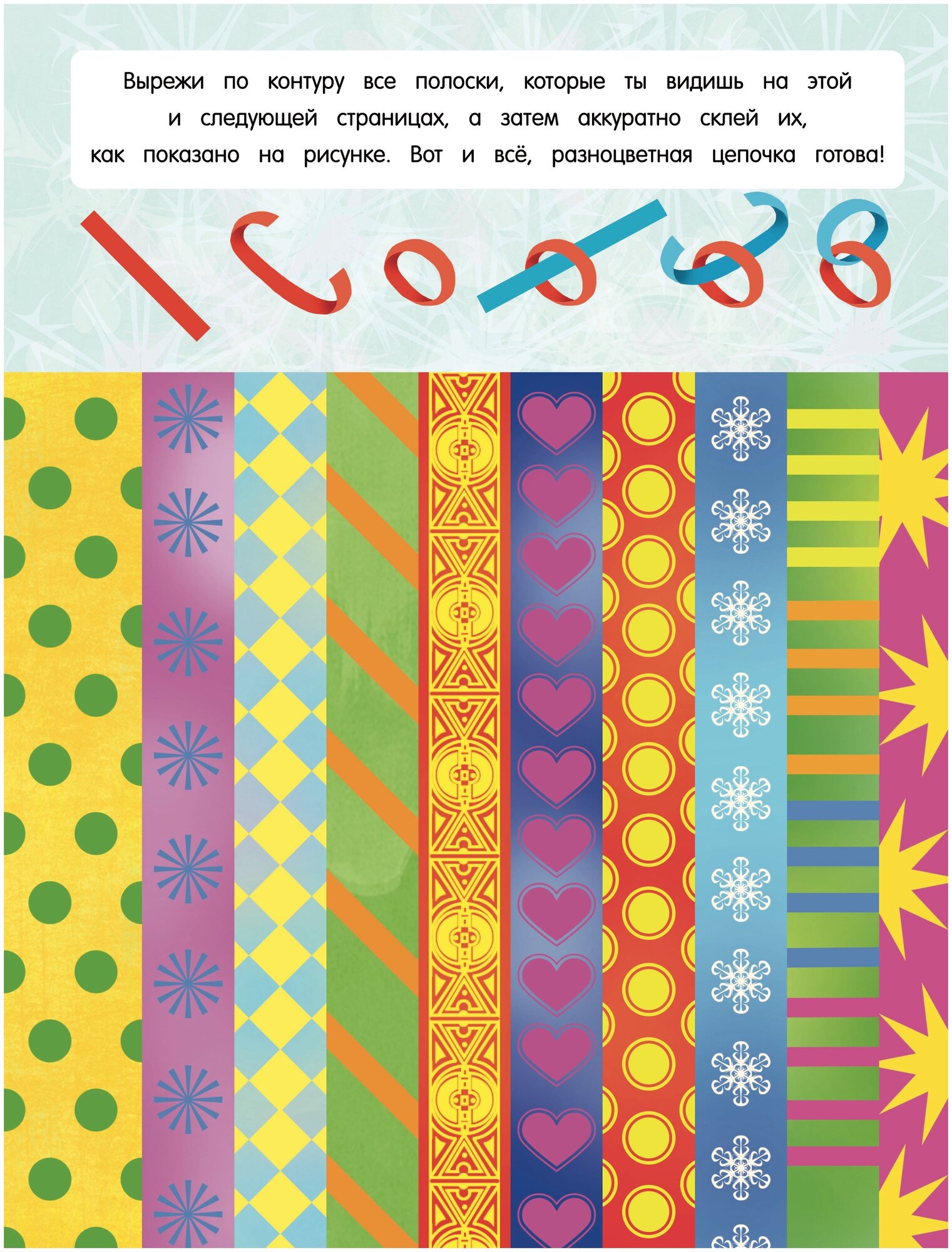 Книжка содержит 4 задания : сделать бумажную цепочку, гирлянду из ромбов, объемную звезду и открытку. Ну и главная фишка книжки - светящиеся в темноте наклейки. Довольно интересно. Правда места для наклеивания этих наклеек очень мало, только на открытку, на которую еще должен быть приклеен снеговик и елка. Но можно их использовать для украшения других открыток. Цена конечно завышена, если только брать со скидкой, тогда еще стоит.